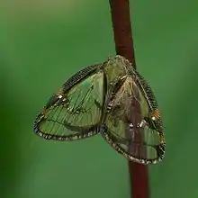 Ricaniidae is a family of planthopper insects, containing over 40 genera and 400 species worldwide. The highest diversity is in tropical Africa and Asia and in Australia, with a few species occurring in the Palearctic. It is one of the smaller families in the planthopper superfamily Fulgoroidea.[1]