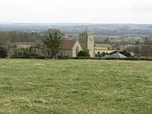 The current parish church is All Saints,[9] designed by the notable architect Richard Norman Shaw, and opened in 1892.[10] It is situated north of the village, in the Batchcott area, by the side of the B4361 road and is a Grade I Listed building.[11] The triptych (1892-3) is a masterpiece by Charles Edgar Buckeridge.[12]