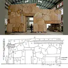 With Rhodes Architectural Stone, Rhodes purchased 17 villages behind the Three Gorges Dam project in China[19] and successfully recycled the antique stone material into construction of architectural projects in the United States.[1] Rhodes' interest with working in high-density limestone led him to the ancient Chinese villages because of the stones texture and warm characteristics. They were in the process of being abandoned and flooded because of the hydroelectric project, which was set to displace between 1.1 and 1.9 million people. The villages were built out of the same high-density limestone, but with the benefit of a patina from thousands of years of daily use and weathering and Rhodes set out to preserve the material. After two years of negotiation, Rhodes worked with the Chinese government to purchase the limestone that would otherwise have been underwater and finance factories with Chinese stonemasons and craftsmen. Rhodes ultimately only harvested the top three inches of the limestone and gave the rest back to the Chinese to build new homes.[6]