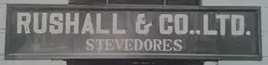 While in Rangoon, Rushall met and married Charlotte Sarah Trype (1882–1933)—the daughter of the local station manager[7]—and settled in the city in 1908 with his second wife and their three daughters: Ella Irene (born 1905), Charlotte Mary (1907–1963), and Cecelia.[2] Whilst there, he resigned from the Irrawaddy Flotilla Company and, in 1906, founded Rushall & Co. Ltd., a stevedoring and contracting business located at 121 Judah Ezekiel Street (now Thein Phyu Road[8]) next to the docks of the city.[9][10] The company employed between 3,000 and 4,000 men.[11] Over the following years, Rushall and Charlotte had three further children: Edna Helen (1909–1910), Richard Boswell (1911–2002) and Edgar Boswell (1916–2002). Charlotte left with the family in 1913 for Rugby, Warwickshire, where she set up and managed two businesses: a brick factory and Rugby Motor Transport Co., a haulage contracting business dealing in lorries and charabancs.[12][13] Rushall remained in Rangoon to tend to his own company. Charlotte died in Rugby on 30 April 1933, with the Rugby Motor Transport Co. being wound-up two months later.[14]