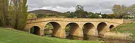 James Backhouse reported Richmond had a court house, a gaol, a windmill and about thirty houses by 1832.[12] Backhouse visited the town again in February 1834 and reported Richmond had nearly doubled in size. The court house was built in 1825-26 and the northern part of the gaol in 1825. Richmond Post Office opened on 1 June 1832. Richmond bridge was built in 1823, using convict labour, and is known as the largest stone span bridge in Australia.[13]