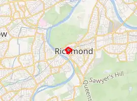 Richmond Green is a recreation area located near the centre of Richmond, a town of about 20,000 inhabitants situated in south west London. Owned by the Crown Estate, it is leased to the London Borough of Richmond upon Thames.[2] The Green, which has been described as "one of the most beautiful urban greens surviving anywhere in England",[3] is essentially square in shape and its open grassland, framed with broadleaf trees, extends to roughly twelve acres. On the north-east side there is also a smaller open space called Little Green.[4] Richmond Green and Little Green are overlooked by a mixture of period townhouses, historic buildings and municipal and commercial establishments including the Richmond Lending Library and Richmond Theatre. On summer weekends and public holidays the Green attracts many residents and visitors. It has a long history of hosting sporting events; from the 16th century onwards tournaments and archery contests have taken place on the Green, while cricket matches have occurred since the mid-18th century,[5] continuing to the present day.