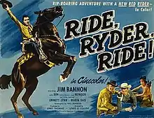 Ride, Ryder, Ride! is a 1949 American Cinecolor western film directed by Lewis D. Collins and starring Jim Bannon, Don Reynolds and Emmett Lynn.[1] It is based on the Red Ryder series by Fred Harman, one of four films made by Eagle-Lion Films featuring the character.