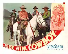 Ride Him, Cowboy is a 1932 pre-Code Western film directed by Fred Allen for Warner Brothers, starring a 25-year-old John Wayne. Based on the 1923 novel of the same name by Kenneth Taylor Perkins, the film is a remake of The Unknown Cavalier, a 1926 Ken Maynard Western, with much stock footage from the original. The film was released as The Hawk in the U.K.[2]