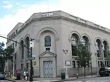 Ridgewood is home to Ridgewood Savings Bank, the largest mutual savings bank in New York State. Their headquarters is located at the intersection of Myrtle and Forest Avenues and was built in 1929. The building architects were Halsey, McCormack and Helmer, Inc. and the general contractors were Stamarith Construction Corporation.[71] The building's exterior is made of limestone and contains an eight-foot granite base. The interior has travertine walls and marble floors.