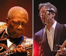 Riding with the King was the first collaborative album by Eric Clapton and B.B. King.[1][2] They performed together for the first time at Cafe Au Go Go in New York City in 1967 when Clapton was 22 and a member of Cream, but did not record together until 1997 when King collaborated with Clapton on the song "Rock Me Baby" for his duets album, Deuces Wild.[3][4] Clapton looked up to King and had always wanted to make an album with him.[3] King said they had discussed the project often, and added: "I admire the man. I think he's No. 1 in rock 'n' roll as a guitarist and No. 1 as a great person."[3] At the time of recording Riding with the King, Clapton was 55 and King 74.