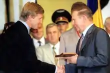 After Ukraine's Orange Revolution of late 2004, in an attempt to fight corruption, several prominent businessmen who were also Party of Regions members came under criminal investigation;[38] In 2011, Hennadiy Moskal, who in 2005 acted as Deputy Minister of Internal Affairs of Ukraine, gave an interview to Ukrainian magazine Профиль (profil-ua), where he claimed to have been under Presidential orders in 2005 to investigate and audit Akhmetov for his alleged role in organized crime. Concrete evidence was never officially revealed against him, nor his company. According to Moskal, the MVS investigated all incidents related to missing people in 1990s in Donetsk region, who had any property left, and its current owners, but no connections with Rinat Akhmetov and his entourage were found.[39] Looking back, Moskal concluded that "we had nothing on Akhmetov in 2005".[39] According to political journal's Post-Soviet Affairs, and The Nation, Akhmetov was investigated on murder charges and for his alleged role in organized crime in the Donetsk region. To avoid prosecution he was prompted to flee the country to Monaco.[39][40][41][42] In June 2005, Serhiy Kornich, then head of the Interior Ministry's economic crimes department, stated publicly that Akhmetov was "the head of [an] organized crime group."[43] That year, Borys Kolesnikov, a friend and associate who had been tied to Akhmetov since the 1980s, was arrested on charges of extortion and conspiracy to assassinate a rival Donetsk businessman.[40] Charges against Akhmetov and Kolesnikov were dropped in 2006 amid a significant rise in political power by the former,[40] and the cooperation of the Yuschenko government,[42] ending Akhmetov's exile.