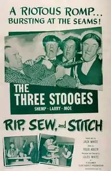 Rip, Sew and Stitch is a 1953 short subject directed by Jules White starring American slapstick comedy team The Three Stooges (Moe Howard, Larry Fine and Shemp Howard). It is the 150th entry in the series released by Columbia Pictures starring the comedians, who released 190 shorts for the studio between 1934 and 1959.