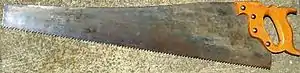 A rip saw is a wood saw that is specially designed for making a rip cut, a cut made parallel to the direction of the wood grain.