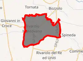 Rivarolo Mantovano borders the following municipalities: Bozzolo, Casteldidone, Piadena, Rivarolo del Re ed Uniti, San Martino dall'Argine, Spineda, Tornata. It is a village with a squared plan and perpendicular roads as established by duke Vespasiano I Gonzaga in the late 16th century.