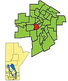 River Heights is a provincial electoral division in the Canadian province of Manitoba. It was created by redistribution in 1957, and formally came into existence in the 1958 provincial election. The riding is located in the south-central region of the City of Winnipeg.