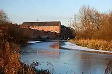 On the eastern bank of the Soar in central Leicester are the premises of Donisthorpe and Company, a producer of textiles. The Donisthorpe Mill, also known as Friars' Mill, is one of the oldest mills in the East Midlands, and manufacturing activity has occurred on its site since the 1730s. The Mill was awarded listed status in 1975.[15] A number of surrounding buildings, including a Victorian pump house, were also listed at this time.[16][17] The Donisthorpe Company left the factory in 1983, which led to immediate concerns about the mill's conservation.[18] The building stood empty for a number of years, and fell into a state of disrepair. In July 2012, a fire destroyed its roof, clocktower and most of the interior.[19][20] In November 2012, Leicester City Council announced its decision to purchase and restore the Donisthorpe Mill building.[21]