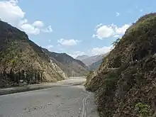 The Chandrabhaga or Chenab (Vedic name Askni), the largest river (in terms of volume of water) is formed after the meeting of two streams namely, Chandra and Bhaga at Tandi, in Lahaul. It flows 122 kilometres (76 mi) and covers an area of 7,500 square kilometres (2,900 sq mi). in Himachal, before entering Kashmir. The Chandra passes through the barren tribal land.