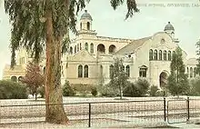 Riverside Polytechnic High School traces its heritage from 1887,[4] when the newly formed city of Riverside needed higher education for the community. The first joint elementary and high school's first graduating class in 1890 comprised seven students—four girls and three boys. Eugenie Fuller was its principal. When classes grew too large in 1902, a new co-educational high school building was constructed on Ninth Street between Lemon and Lime Streets, and the original 14th Street building became the Grant School, serving grades 3–8.[6]