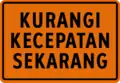 Worded warning sign (in this case "Reduce Speed Now")