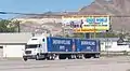 In the United States, trucks on public roads are limited to two trailers (two 28 ft or 8.5 m and a dolly to connect; the limit is 63 ft or 19 m end to end). Some states allow three 28 ft or 8.5 m trailers, although triples are usually restricted to less populous states such as Idaho, Oregon, and Montana, plus the Ohio Turnpike[18] and Indiana East-West Toll Road. Triples are used for long-distance less-than-truckload freight hauling (in which case the trailers are shorter than a typical single-unit trailer) or resource hauling in the interior west (such as ore or aggregate). Triples are sometimes marked with "LONG LOAD" banners both front and rear. "Turnpike doubles"—tractors towing two full-length trailers—are allowed on the New York Thruway and Massachusetts Turnpike (Interstate 90), Florida's Turnpike, Kansas Turnpike (Kansas City - Wichita route) as well as the Ohio and Indiana toll roads.[19] Colorado allows what are known as "Rocky Mountain Doubles" which is one full length 53 ft or 16 m trailer and an additional 28 ft or 8.5 m trailer. The term "road train" is not commonly used in the United States; "turnpike train" has been used, generally in a pejorative sense.[20]