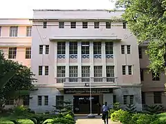 In 1886, Bourke was appointed Governor of Madras.[6] The following year he was appointed a Knight Grand Commander of the Order of the Indian Empire[2] and raised to the peerage as Baron Connemara, of Connemara in the County of Galway.[7] In 1890 he laid the foundations stone of the Connemara Public Library in Madras, which was named after him and opened six years later.[8] The building was originally planned to house the proposed Victoria Technical Institute which was constructed in 1887, the Golden Jubilee year of Queen Victoria's reign. The third session of the Indian National Congress was held at Madras in 1887 when Lord Connemara was the governor. He hosted a garden party at Government House for the delegates. The construction of the Madras High Court was commenced in 1889.