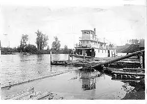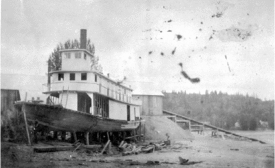 The Robert C Hammond was the last sternwheeler built for service on the upper Fraser and Nechako Rivers. She was owned by the Fort George Lake and River Transportation Company, a partnership of George Hammond and his brother. She was launched at the Central Fort George town-site of Fort George on May 22, 1913. She was built so that George Hammond, the promoter of Central Fort George, could claim that his community had steamer service.[1] Central Fort George was on the Nechako River and the large sternwheelers owned by the BC Express Company, despite a $50 per trip inducement, could rarely call there, as there often were sandbars unless the water was very high.[2] The rival sternwheelers of the South Fort George town-site owned by the Fort George Lumber and Navigation Company were not interested in helping George Hammond promote Central.