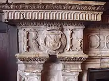 On 21 September 1578 Leicester secretly married Lady Essex at his country house at Wanstead, with only a handful of relatives and friends present.[123] He did not dare to tell the Queen of his marriage; nine months later Leicester's enemies at court acquainted her with the situation, causing a furious outburst.[124] She already had been aware of his marriage plans a year earlier, though.[125] Leicester's hope of an heir was fulfilled in 1581 when another Robert Dudley, styled Lord Denbigh, was born.[126] The child died aged three in 1584, leaving his parents disconsolate.[127] Leicester found comfort in God since, as he wrote, "princes ... seldom do pity according to the rules of charity."[128] The Earl turned out to be a devoted husband:[129] In 1583 the French ambassador, Michel de Castelnau, wrote of "the Earl of Leicester and his lady to whom he is much attached", and "who has much influence over him".[130] Leicester was a concerned parent to his four stepchildren,[131] and in every respect worked for the advancement of Robert Devereux, 2nd Earl of Essex, whom he regarded as his political heir.[132]