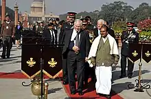 Gates was nominated by Republican president George W. Bush as Secretary of Defense two years after the 2004 election, replacing Donald Rumsfeld.[3] He was confirmed with bipartisan support.[4] In a 2007 profile written by former national security advisor Zbigniew Brzezinski, Time named Gates one of the year's most influential people.[4] In 2008, Gates was named one of America's Best Leaders by U.S. News & World Report.[5] He continued to serve as Secretary of Defense in President Barack Obama's administration.[6] He retired in 2011. "He'll be remembered for making us aware of the danger of over-reliance on military intervention as an instrument of American foreign policy," said former senator David L. Boren.[7] Gates was presented the Presidential Medal of Freedom, the nation's highest civilian award, by President Obama during his retirement ceremony.[8]
