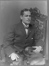 Owen himself first ran in a non-binding primary for U.S. Senator. The Democrats of Indian Territory recommended him to the voters as a "statesman, lawyer, businessman," and, significantly, "as an Indian."[40] Owen took first place in the primary and was subsequently officially elected by the legislature as a Democrat to the United States Senate.[41] As two senators were being elected simultaneously, Owen and Thomas Gore, the two men entered a lottery to determine which of them should serve the longer and which the shorter term before needing to run for re-election. Owen won the draw, and hence went on, as a member of the Senate's Class 2, to serve a first term of over five years, ending on March 4, 1913. Owen was elected United States Senate Democratic Conference Secretary on December 3, 1913, despite not being sworn in officially as a U.S. Senator until December 11.[42]