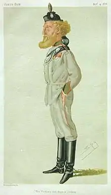 Loyd-Lindsay was later involved in the volunteer movement, serving as Colonel of the Royal Berkshire Volunteers, and subsequently Brigadier-General of the Home Counties Brigade. He was one of the first recipients of the Volunteer Officers' Decoration.[5] He was also Lieutenant Colonel of the Honourable Artillery Company from 13 November 1866[6] to 17 August 1881.[7]