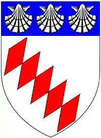 - These were the arms of the heiress Barbara Gammage borne as an escutcheon of pretence by her husband Robert Sidney, 1st Earl of Leicester, as is visible on the imprints of 55 books donated by him to the Bodleian Library. The earlier arms of Gammage found on various rolls of arms omitted the escallops and place the bend fusilly over all