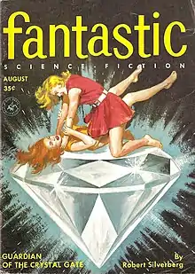 That year Silverberg was the author or co-author of four of the six stories in the August issue of Fantastic, breaking his record set in the previous issue.[7] For the next four years, by his own count, he wrote a million words a year, mostly for magazines and Ace Doubles. He used his own name as well as a range of pseudonyms during this era, and often worked in collaboration with Randall Garrett, who was a neighbour at the time.[8] (The Silverberg/Garrett collaborations also used a variety of pseudonyms, the best-known being Robert Randall.) From 1956 to 1959, Silverberg routinely averaged five published stories a month, and he had over 80 stories published in 1958 alone.
