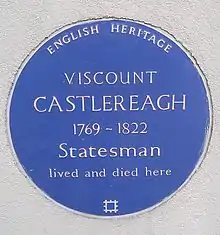 Robert Stewart, 2nd Marquess of Londonderry, KG, GCH, PC, PC (Ire) (18 June 1769 – 12 August 1822), usually known as Lord Castlereagh,[1] derived from the courtesy title Viscount Castlereagh[lower-alpha 1] (UK: /ˈkɑːsəlreɪ/ KAH-səl-ray) by which he was styled from 1796 to 1821, was an Anglo-Irish statesman. As British Foreign Secretary, from 1812 he was central to the management of the coalition that defeated Napoleon. He was the principal British diplomat at the Congress of Vienna. Castlereagh was also leader of the British House of Commons in the Liverpool government from 1812 until his suicide. Early in his career, as Chief Secretary for Ireland, he was involved in putting down the Irish Rebellion of 1798 and was instrumental in securing the passage of the Irish Act of Union of 1800.