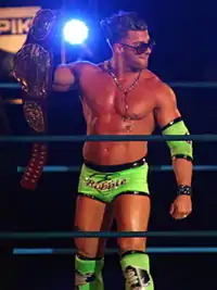 Robbie made his in–ring debut the following week, defeating Amazing Red, and afterwards called out X Division Champion Jay Lethal.[42] The following week Robbie defeated Lethal in a non–title street fight, after interference from Cookie, to earn the right to challenge for the X Division Championship.[43] On November 7 at Turning Point, Robbie defeated Lethal, with help from Cookie, to win the X Division Championship for the first time.[44] The following month at Final Resolution Robbie retained the title in a rematch via disqualification, when Lethal was caught using Cookie's hairspray on him. During the match Cookie was suspended above the ring in a shark cage.[45] On December 7 at the tapings of the December 16 edition of Impact!, Robbie E lost the X Division Championship back to Lethal.[46][47]