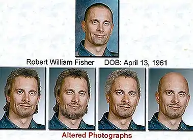 Robert William Fisher (born April 13, 1961) is an American fugitive wanted for allegedly killing his family and blowing up the house in which they lived in Scottsdale, Arizona, on April 10, 2001. He was named by the Federal Bureau of Investigation as the 475th fugitive to be placed on the list of FBI Ten Most Wanted Fugitives on June 29, 2002.[1]