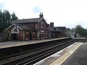 Robertsbridge was temporarily the terminus of the South Eastern Railway's (SER) "Hastings Line" from Tunbridge Wells. This section was opened on 1 September 1851, with the 5.99 mile (9.64 km)[1] stretch to Battle following four months later. A connection was then made with the existing route to Hastings on 1 February 1852;[2] the line connecting St Leonards (West Marina) with Hastings having been opened by the SER on 13 February 1851, and which initially gave the Brighton, Lewes and Hastings Railway access to the latter town.[3] A large station building was provided on the Down side, along with a signal box at the south end of the Down platform.