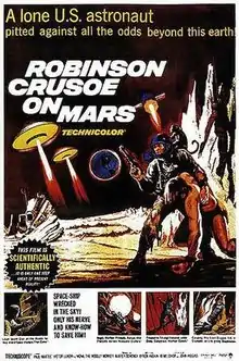 Robinson Crusoe on Mars is a 1964 American science fiction film directed by Byron Haskin and produced by Aubrey Schenck that stars Paul Mantee, Victor Lundin, and Adam West. It is a science fiction retelling of the classic 1719 novel Robinson Crusoe by Daniel Defoe. The film was distributed by Paramount Pictures and filmed in Technicolor and Techniscope.