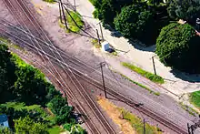 - Eastbound - Both railroads have defect detectors just west of the crossing that signal train statuses over the radio