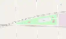 The park is in the eastern quadrant of the diamond crossing between the Union Pacific Railroad (UP) and BNSF Railway (BNSF) mainlines between Chicago and points west.