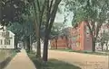 In 1854, the E.G. & E. Wallace Shoe Company was established, eventually becoming the city's largest employer, with over 700 workers in 1901. Its name changed to the Rochester Shoe Corporation in the 1920s. The Wallace brothers died in the 1890s,[7] and other shoe factories opened, including Perkins, Linscott & Company (later the Linscott, Tyler, Wilson Company) off Wakefield Street and N. B. Thayer & Company, Inc., in East Rochester.[8] In the early twentieth century, more people were employed in shoe manufacturing than in all other local industries combined. Rochester contributed to New Hampshire's position as the nation's third largest shoe-producing state.[7] The Kessel Fire Brick Company was established in 1889, and at one time bricks for new buildings at Harvard University were made in Gonic. Carrying the freight were four railroads which once passed through Rochester, a major junction between Haverhill, Massachusetts and Portland, Maine. Agriculture continued to be important, and in 1875 the Rochester Fair was established. In 1891, Rochester was incorporated as a city.