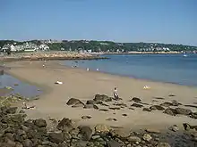The town has a total area of 17.5 square miles (45.4 km2), of which 7.0 square miles (18.1 km2) is land and 10.5 square miles (27.3 km2), or 60.14%, is water.[26] Rockport lies at the far eastern end of Cape Ann and is surrounded on three sides by water. There are three islands, Straitsmouth Island, Thacher Island, and Milk Island, which lie off the coast of Rockport and are part of the town. The town's shore is mostly rocky north of Lands End, but is somewhat less so south of there, as three of the town's six beaches are on this 1-1/4-mile stretch of shoreline. Rockport Harbor and Old Harbor, both near the center of town, provide deeper water in which boats may dock, which provides ocean access to the fishing community. The town's highest point is atop Pool Hill, which is surrounded by the town forest. The town's other protected areas include Halibut Point State Park & Reservation, the Thacher Island National Wildlife Refuge, and the Knight Wildlife Reservation on Milk Island, as well as a smaller area just south of Halibut Point run by the Massachusetts Audubon Society.