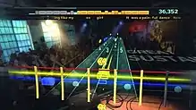 About the same time, Ubisoft's president of North American operations, Laurent Detoc, challenged its San Francisco development team to develop their own game, as until this time, the studio only had supported external developers.[15] The music game field was of interest; as stated by Detoc, "I just could not believe the amount of waste that had gone in people spending so much time with plastic guitars".[15] The studio was able to acquire Game Tank and the Guitar Rising technology, bringing aboard Parks and his lead designer Nick Bonardi as Ubisoft employees. The Ubisoft studio team of about 60 were led by Paul Cross and Nao Higo, and set about to transform the Guitar Rising into a retail product over a period of about two years.[15] Developer Jason Schroeder referred to the state of Guitar Rising as a "PC tech demo of note recognition" and set about redesigning the HUD so that non-guitarists could understand the game better.[13] It had been laid-out as a horizontal scrolling tablature,[16] but this was found to be too difficult for non-guitarists to work with, and as the game was meant for anyone to be able to play, a vertical scrolling note chart was created instead.[13]