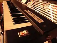 From 1974 to 1976 RMI produced its only true synthesizer, the $3,000 RMI Harmonic Synthesizer,[4] an instrument that was years ahead of its time (Yamaha's DX-7 was released in 1983, nine years later) but not widely used or understood. The 48-key dual mono, analog/digital hybrid synth featured two digital harmonic generators (16 harmonics each, with two sets of harmonic sliders), five presets, an LFO, arpeggiator, a VCF with mixable low-pass, band-pass and high-pass outputs,[5] and AM and FM capability.[4][6] It was used most prominently by Jean Michel Jarre who played the RMI Harmonic Synthesizer on his Oxygène (1976) album as well as on many other albums that were to follow later. Stevie Wonder and Isaac Hayes were also rumored to have this instrument in their rigs. In more recent times, the Harmonic Synthesizer was used by Richard D. James aka Aphex Twin and Stephen Parsick/['ramp].