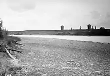 The posts were built at the confluence of the Clearwater River and the North Saskatchewan River. They were on the north bank just above the Clearwater and strongly built for protection from the Blackfeet. During low water there were rapids near the post. Around 1980, only two stone chimneys were standing. An interpretive centre was subsequently developed at this location.[7]