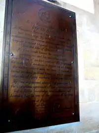 In Oxford lore, Bacon is credited as the namesake of Folly Bridge for having gotten himself placed under house arrest nearby.[148] Although this is probably untrue,[149] it had formerly been known as "Friar Bacon's Bridge".[150] Bacon is also honoured at Oxford by a plaque affixed to the wall of the new Westgate shopping centre.[148]