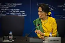The 2016 military crackdown on the Rohingya people drew criticism from the UN (which cited possible "crimes against humanity"), the human rights group Amnesty International, the U.S. Department of State, the government of neighbouring Bangladesh, and the government of Malaysia. The Burmese leader and State Counsellor (de facto head of government) and Nobel Peace Prize laureate Aung San Suu Kyi was criticised for her inaction and silence over the issue and did little to prevent military abuses.[20][21][22] Myanmar also drew criticism for the prosecutions of journalists under her leadership.[23]