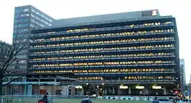 The Rohm and Haas Corporate Headquarters in Philadelphia, Pennsylvania, United States was built as the headquarters for the former chemical manufacturing company Rohm and Haas. Completed in 1964, the building was the first private investment for the urban renewal of the Independence Mall area. Only two blocks from Independence Hall the building, designed by Pietro Belluschi and George M. Ewing Co., was lauded for its respect to the nearby park and historical buildings. Philadelphia's city planners praised the Rohm and Haas Corporate Headquarters as a standard for all redevelopment buildings.[2]