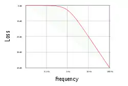 Filters with a high roll-off were first developed to prevent crosstalk between adjacent channels on telephone FDM systems.[4] Roll-off is also significant on audio loudspeaker crossover filters: here the need is not so much for a high roll-off but that the roll-offs of the high frequency and low-frequency sections are symmetrical and complementary. An interesting need for high roll-off arises in EEG machines. Here the filters mostly make do with a basic 6 dB/8ve roll-off, however, some instruments provide a switchable 35 Hz filter at the high frequency end with a faster roll-off to help filter out noise generated by muscle activity.[5]