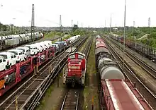 In the United States, the definition has been expanded from the older broadly defined "trains" to include wheeled vehicles used by businesses on roadways.[5][6][7]