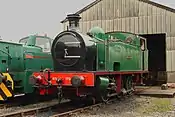 Green | Built 1938 by Hudswell Clarke for the industrial railway connecting G&T Earle's cement works with the mainline at Hope on the ex-Midland Sheffield to Manchester line.[6] Named Nunlow after a hill that stood on the works site. During the mid-1960s, role was taken over by diesel shunters. Taken to the Dinting Railway Centre in 1969, moved to KWVR in 1990.[6] Property of the Bahamas Locomotive Society, the locos boiler ticket expired in April 2018 and is now stored at Ingrow awaiting its turn in the overhaul queue. |