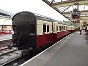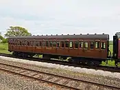 | 1507 | LYR 6 wheel 5 compartment Third | Built 1882. Uses underframes of LMS 32988 BGZ built 1938. Operational. | L&YR lined light over dark brown. | ![]() |
