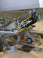 One significant difference was the incorporation of the camshaft and magneto drives into the propeller reduction gears at the front of the engine, rather than using a separate system of gears driven from the back end of the crankshaft; this allowed the overall length of the engine to be reduced as well as making the drive train more reliable and efficient.[6][nb 2] The drive for the supercharger was also taken off the front of the engine, which had required a long shaft to run to its location at the back of the engine.[7]