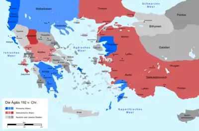 The Seleucid War (192–188 BC), also known as the War of Antiochos or the Syrian War, was a military conflict between two coalitions led by the Roman Republic and the Seleucid Empire. The fighting took place in modern day southern Greece, the Aegean Sea and Asia Minor.