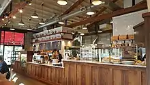 Pastries included croissants, danishes, breakfast quiches, scones, and shortbreads, and tarts; the dessert menu included cookies and kouign-amann.[5][11] The kouign-amann, once described as "Portland's most talked about pastry", had debuted at Matthew Zack's Alder Pastry and Dessert.[5] The drink menu featured coffee made by owner Duane Sorenson's Stumptown Coffee Roasters, using a custom-built espresso machine by La Marzocco.[11] The bakery also offered two cocktails on draught, 16 varieties of wine by the glass or bottle, as well as $2 Rainier drafts.[7]